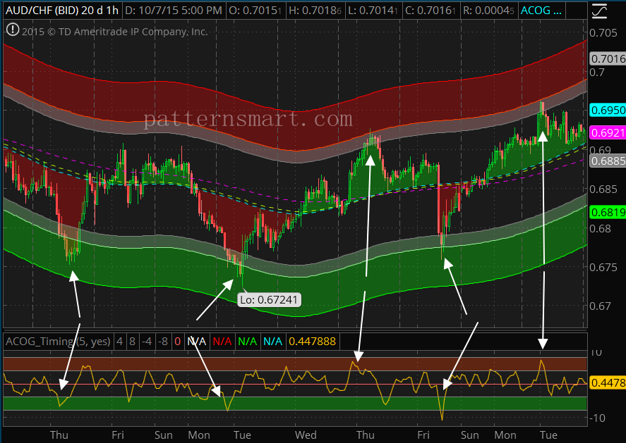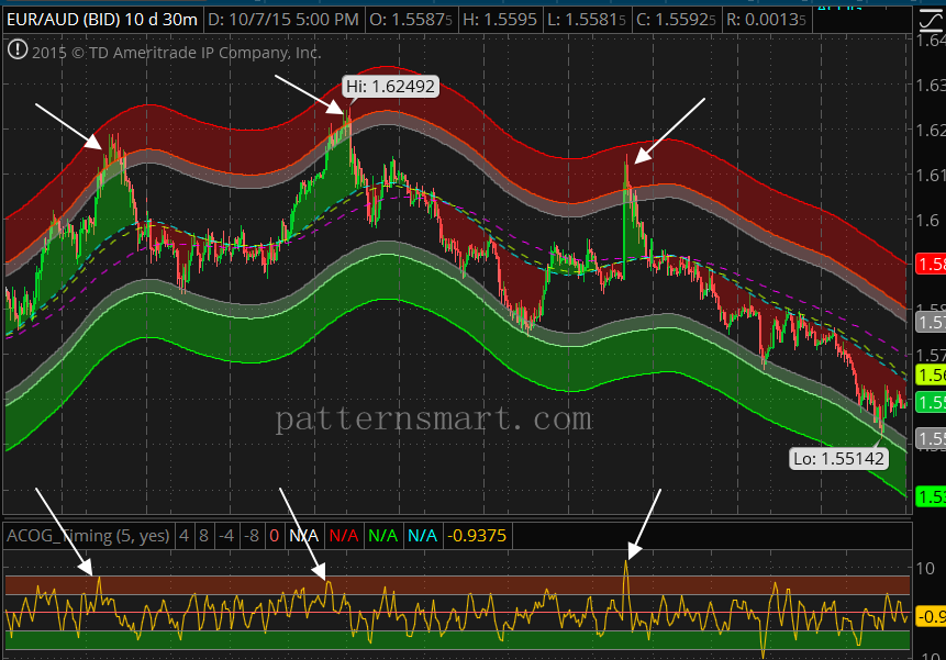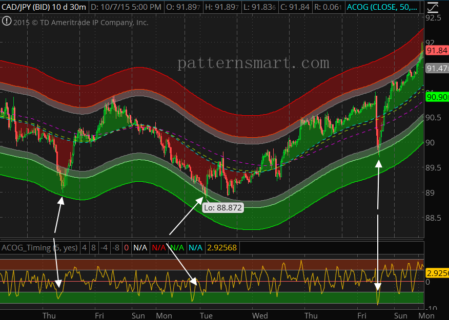 Center Of Gravity (COG) Advanced edition (Thinkorswim) comes with 2 more center lines, they can be used as Fast and Slow signal lines to help traders view longer and shorter trend. All 3 center lines are adjustable, as simple as 3 MA.