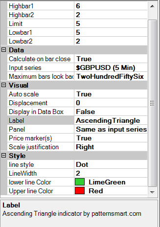 You can also load the indicator three times on chart, with your desired settings to plot Ascending Triangle pattern in short term, mid term and long term at the same time.