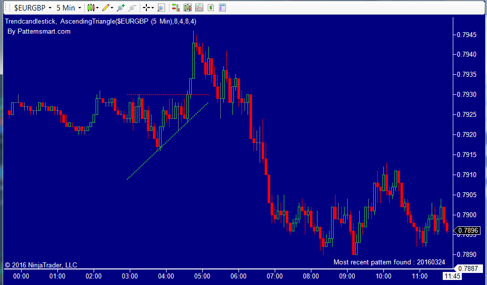 - Drawing Ascending Triangle chart pattern for both current session and historical data.