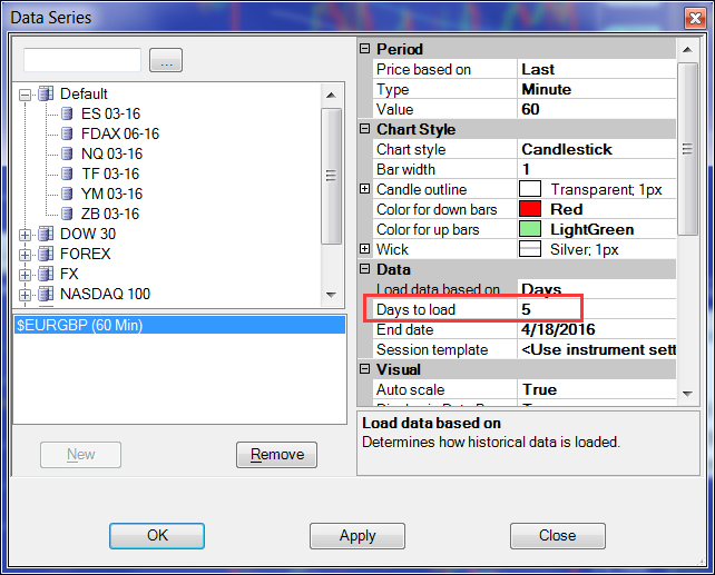Please make sure you use the appropriate chart setting “Days to load”, otherwise you may not get your desired results.