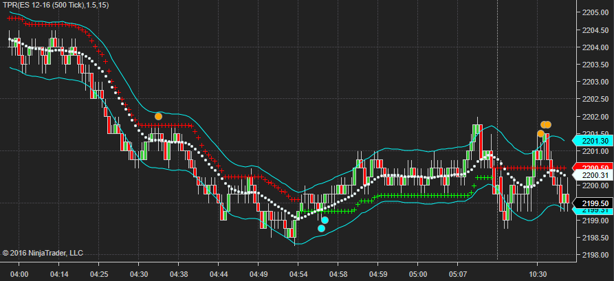 The following 2 charts have both TPR and supertrend. The solid line is from supertrend, the cross line is TPR.