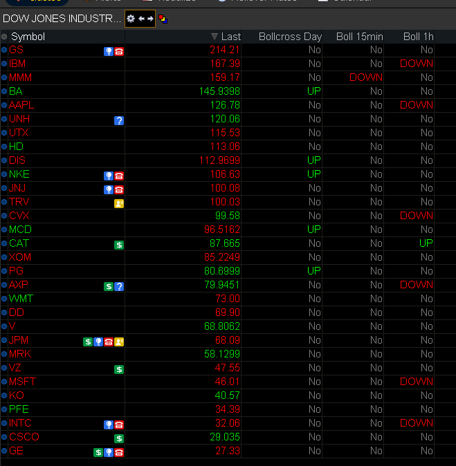 This custom study will help you quickly identify the price position relative to Bollinger Bands in the watch list.