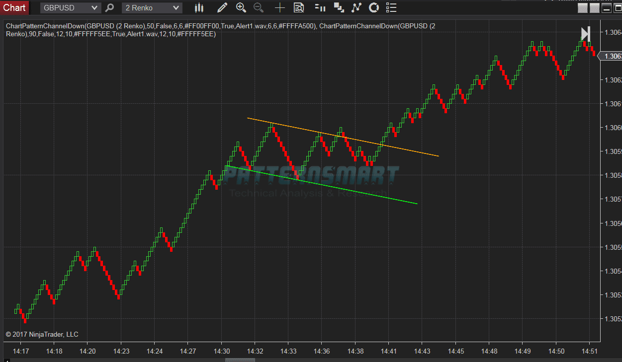 Channel Down Chart Pattern indicator with alert for NinjaTrader 8