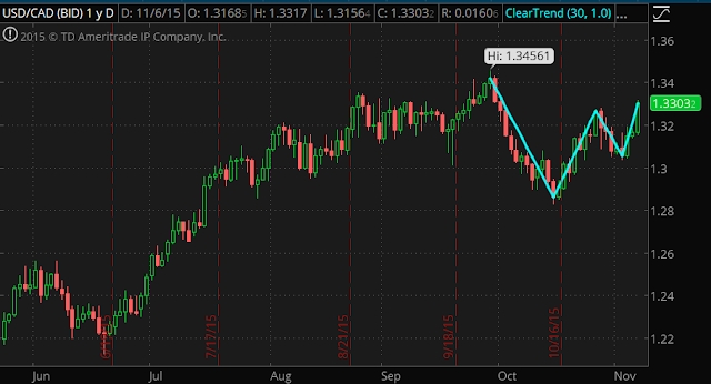 The ClearTrend indicator will simply highlight the trend within a given period of time and the percentage of reversal amount.