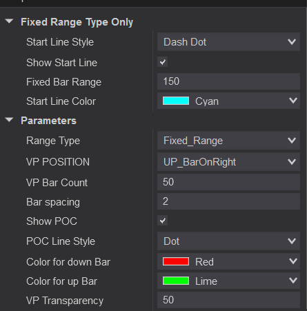 The vertical cyan dash line(VP Start line) is where the VP starts from, it means that the VP calculation is based on those bars on the right side of the VP Start line.