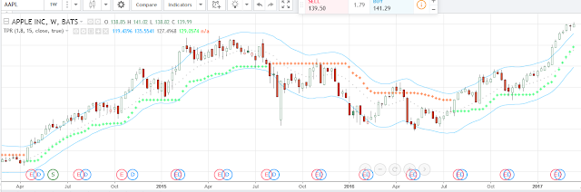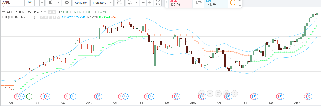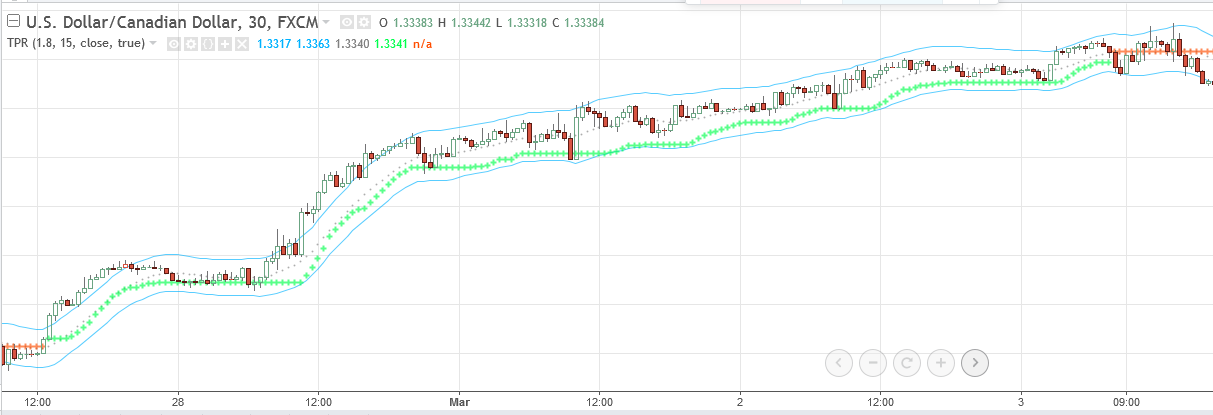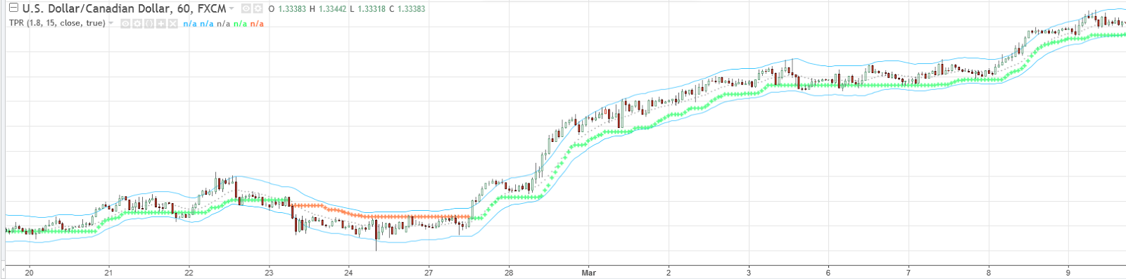 The following 2 charts have both TPR and supertrend. The solid line is from supertrend, the cross line is TPR.