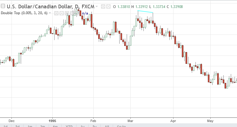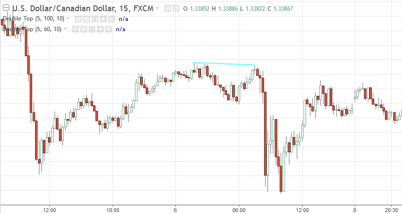 Double top is a very common chart pattern, as its name indicates, it consists of two tops, and these two tops need to be in a relative flat price level. One of the top can't be much higher or lower than the other.