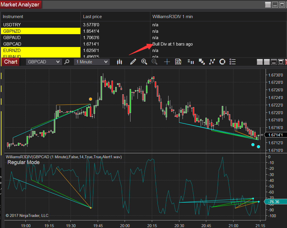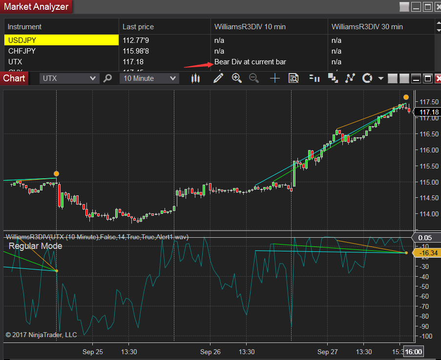 Divergence is very common and useful in technical analysis. It indicates possible reversal signals when there are discrepancies between WilliamsR and price movement.