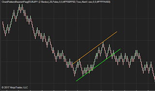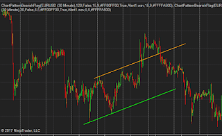 A video demo of how Auto Bearish flag chart pattern indicator works in real-time, please note that I used a 50x fast-forward during the recording.