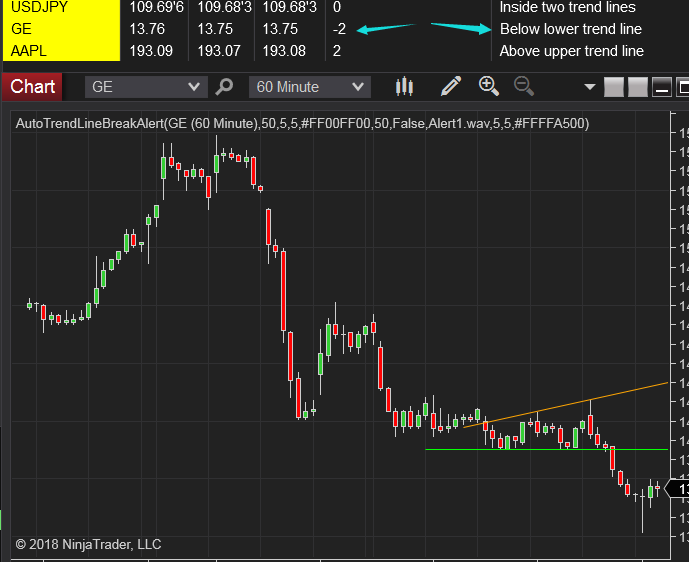 Auto trend line indicator and Market Analyzer with crossover alert for NinjaTrader 8