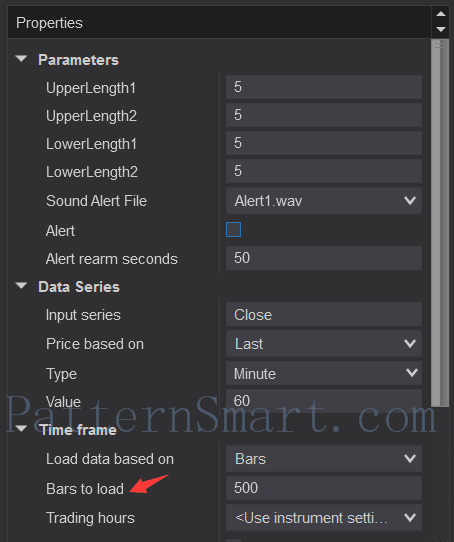 The Strength input is the number of bar on both sides of a swing point, for example, if we set Upper Right Strength to 3 as shown in the image below, it means that there must be at least 3 bars' high is lower than the Upper Right swing point's high on both sides.
