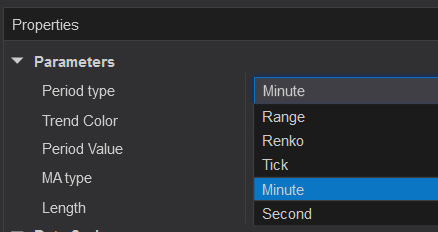 And these period types: Range, Renko, Second, Tick, and Minute.